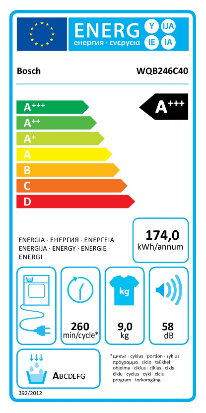 Ob es sich um einen Kondensationstrockner handelt, können Sie auch am Energielabel erkennen: Kondenstrockner sind durch eine Wasserschublade oben links im Gerätesymbol gekennzeichnet.